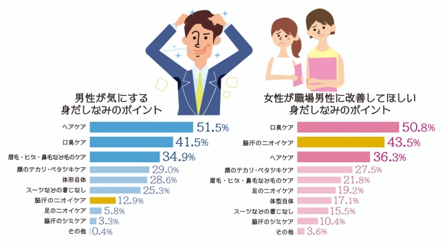 また、調査によると、女性は、口臭ケアと、ワキガケアをなんとかして欲しいとのこと。
